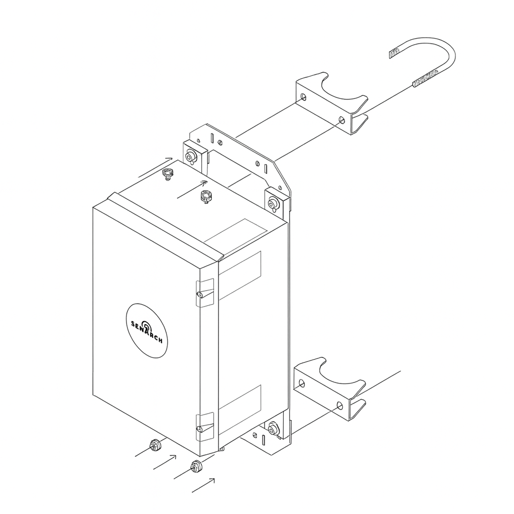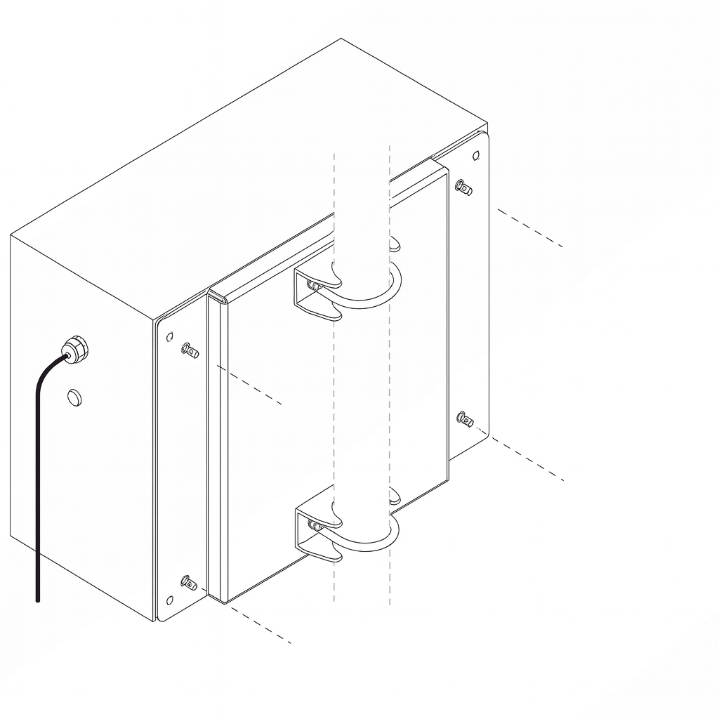 - Attach the mounting brackets to the enclosure with provided screws, washers, and nuts