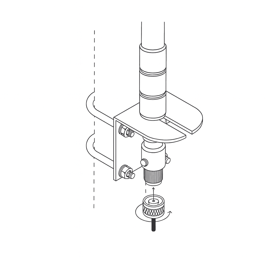- Fix the brackets to the pole with U-bolts and tighten securely